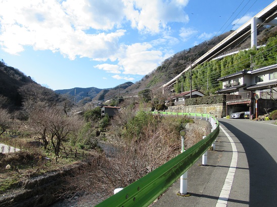 小仏川沿って緩やかな坂道を進む。右手には、中央高速道が見えるようになる。 |