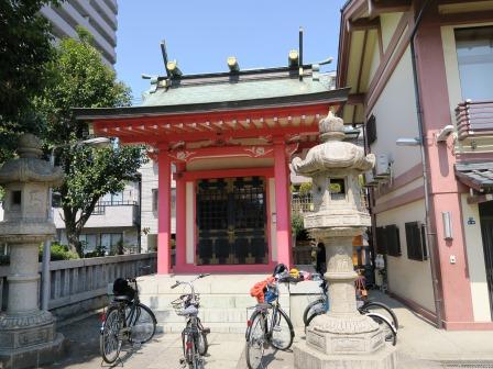 元の南北の通りにもどり、南へ向かって春日通りを越えて、100m程先を右折すると、左側若宮公園の北側に、牛嶋神社がある。 吾妻橋の北-隅田川の東側に牛嶋神社があり、以前、鎌倉街道「下の道」を歩いた時に、頼朝に関係のある神社との覚えがあったので、、立ち寄った。 小さな社殿で、石柱に「摂社 若宮 牛嶋神社」とある。 向島にある本社の牛嶋神社の摂社であり、また大祭の際の旅所とされている。 若宮公園の南側の道を、真東に進む。 |