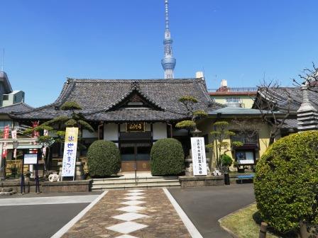 次の信号を右折し、最初の道を左折すると、報恩寺の山門前にでる。 そこから南に長い参道がのびている。 墨田区の「高札」によると、「長禄2年(1458) 太田道灌が江戸城築城にあたり、丑寅の方角である江戸平河に、城内鎮護の祈願所を設けたことに始まるという。 ![]() 其の後、元禄8年(1695)に現在地に移ってきたが、当時は二十ヶ寺の塔頭を要していたという。 参道の南側には、江戸十大祖師という大きな掲示がある。 長い参道→ この辺りが「送り提灯」ゆかりの地である。 |