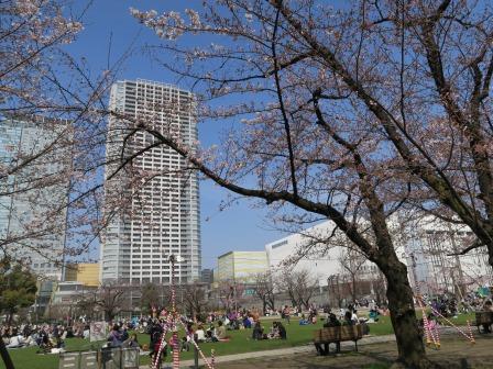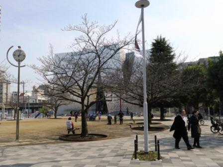 切子館から100m程もどり、錦糸町駅に行くためにタワービュー通りを南へ進んで、錦糸町駅にいくことにした。そこには、歌手の市川由紀乃さんが一日警察署長として、TV局のインタビューを受けていた。 駅前の通りまで約300m、うしろにスカイツリーを見ながら、一方通行の道をのんびり歩くことができた。 錦糸公園 ![]() 駅の北側にある広い錦糸公園には桜が満開の一歩手前で、多くの家族連れでにぎわっていた。 |