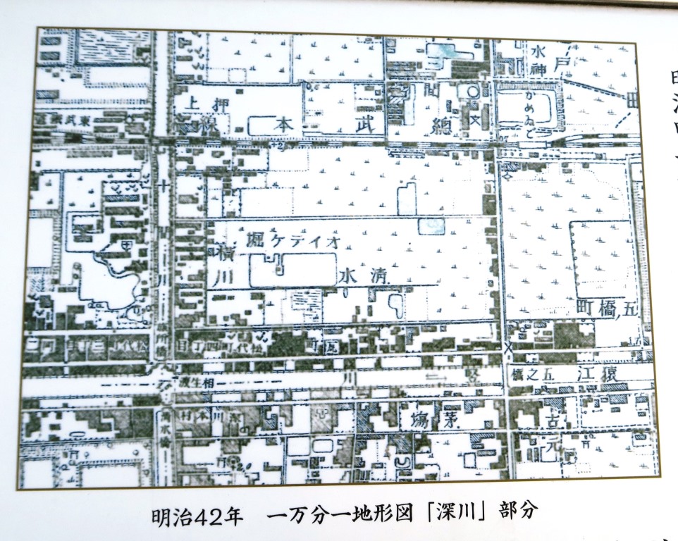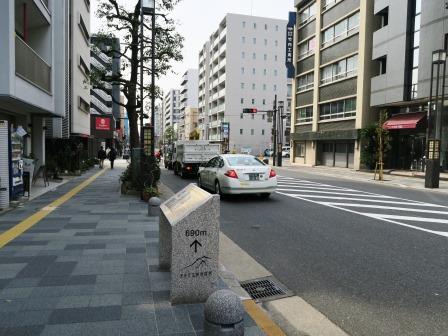 京葉道路を西に向かうと、埋め立てられた大横川に架かる江東橋となる。 先ほど ここから数百m北の紅葉橋を渡ったが、この大横川は、明暦3年(1657)の江戸大火の復興後の一環として 本所地域を南北に貫通した河川として整備されたという。 この付近が「送り拍子木」の話のあった所といわれる。 |