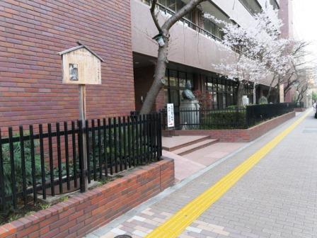 正門の左手に「明徳小学校跡」と刻まれた大きな石碑が建ち、由来が記された立派な金属製の説明板がある。 「本所表町本久寺の寺子屋を前身とし、旧肥前平戸藩主 松浦肥前守の下屋敷跡に、開校され・・・・」とある。 ![]() このあたりが、本所七不思議の「狸ばやし」のもとになったところという。 |