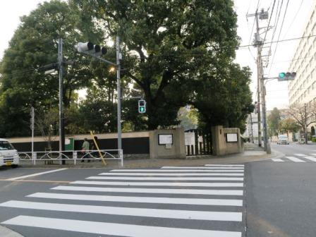 錦糸公園の南の道を東へ進み、横十間川に架かる錦糸橋を渡って川沿いに南へ向かい、京葉道路にぶつかって東へ。 ENEOSのスタンドの角を100mほど南にむかうと、第三亀戸中学校の正面となる。 |