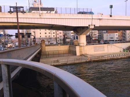 堅川の真上を首都高速が通っているが、本所側から新大橋・森下方面を繋いでいるのが、一之橋である。 説明板によると 「幕府は低湿地であった本所の開発にあたり、洪水の被害を最小限に止めるため排水路を碁盤目状に開削し、掘り出した土を陸地の補強、嵩上げに利用しました。排水路は隅田川に対し縦・横に開削されました。 万治2年(1659)、縦の代表格、堅川の開削と同時に架けられ、隅田川から入って一ツ目の橋という意で命名されたのが、この一之橋で長さ十三間、幅二間半ほどありました。」という。 (江戸城に向かって縦(東西)に流れることから、たてかわとなった) 赤穂浪士が泉岳寺に引き揚げる際に最初に渡った橋としてしられる。 |