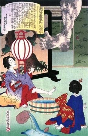 正門の右側に「江東区登録史跡 おいてけ堀跡」の石碑と、説明板が立っている。![]() 説明板によると、「明治2年(1909)作成の地図に、亀戸町字横川と清水の間(現在の亀戸中学校付近)の堀に「オイテケ堀」と記されており、また、その後発行された「東京近郊名所図会」其六では、この「オイテケ堀」を実地調査し、四方に樹木はなく釣堀のようになっていること、地元でおいてけ堀と呼ばれている場所が一か所だけではないことが記載されている。」という。(右説明板をクリックすると拡大) 「おいてけ堀は、天明7年(1787)刊の黄表紙「亀山人家妖(きさんじんいえのばけもの)」に取り上げられていることから、18世紀には伝承として成立していた」 という。 |
