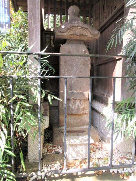 | 鳥居の左手に、「井の頭弁財天の道標」と、その脇の祠に庚申塔が納められている。 |