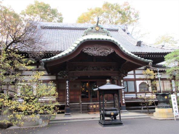 | 「吉祥寺サンロード」を、駅方面に向かうと月窓寺の山門がある。 南に回って、本堂に向かう。 家康が江戸に入った頃、月窓寺の前身の「東岸寺」が井の頭池東岸に創建された。 寛文元年(1661)、現在地に移転、その後、月窓寺と改めた(時期不明)という。 月窓寺には 元禄2年(1689)制作の市内最古の 「乾漆造白衣観音坐像」(非公開)があり、この観音像は、村人に馬を飼うものが多かったことから、馬頭観音として信仰されたという。(HPより) |