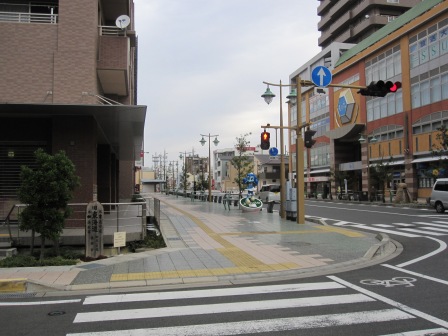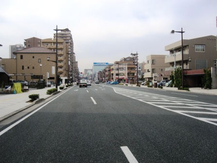 | 右側の「NISSAN}の大きなサインのところに、復元された一里塚がある。宮之一色一里塚で、江戸から63番目という。 |