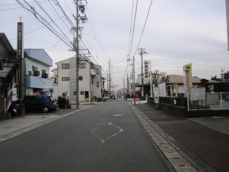 ここからほぼ真っ直ぐに西に向かう。旧東海道らしさの残る町並みが続く。 |