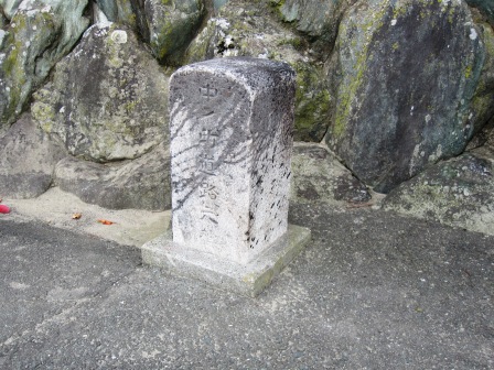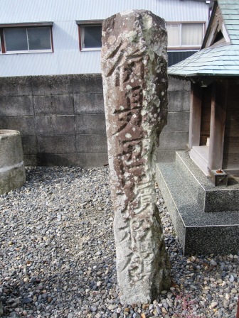 | 神社の石垣の外側に、「旧東海道」の立て看板-中野町の由来・・・江戸、京都より60里・・・と、道路元標の看板がある。 中之町道路元標(中ノ町の起点を示す)→ |