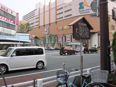 | 浜松では空襲で建物はほとんど焼失した。従って、宿場の状況は、道の流れ、立て札の立つ場所と先ほど見てきた天守閣に掲示されている宿場の絵図や町の略図を想い浮かべながら、当時の様子を想像するのみであるが それも楽しいものであった。 |