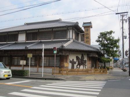 | 掛川駅から西蓮雀交差点まで行き、旧東海道を西に向かう。次の角には清水銀行の建物があり、壁に掛川城主の山内一豊 |