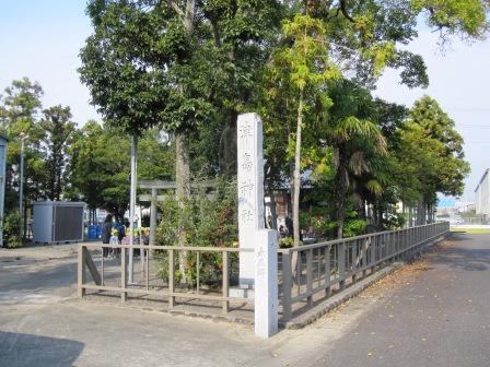 | 右側は工場群が続くが、途中建物が途切れるところで、大きな鳥居が現れる。ここから北約800mの富士浅間宮の赤鳥居である。 神社は大同年間(86~10)坂上田村麻呂が浅間大社より分霊して創建という。本殿は天正18年(1590)の建立という。 本日の行程では往復の時間的余裕がないので、参拝するのはあきらめざるをえなかった。 |