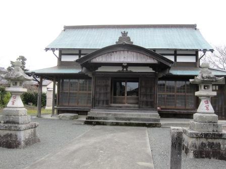 | 交差点を過ぎると右に鳥居が見える。入口に高札場跡之跡の札も立つ。 創立年は不詳。延喜式神明帳に記載され、遠江国の総社であった。 拝殿は文久年間(1861~64)の再建という。 |