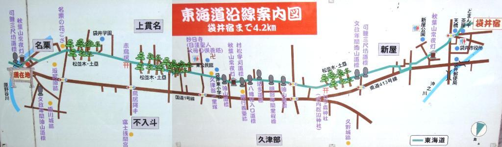 | 掛川 - 見付(磐田) 地図→①日坂~掛川 ②掛川~袋井 ③袋井~三ヶ野 ④三ヶ野~磐田 |