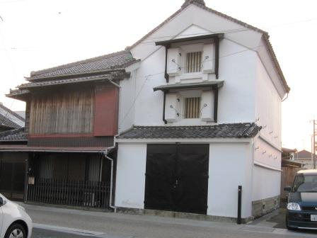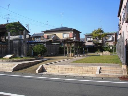右側に木造の常夜灯がたつ。 市内には石で造られた灯籠形と、木造の屋形の常夜灯が合計14基現存しているという。ここの常夜灯は保存状態が大変よく、見事な彫刻が施されている。 |