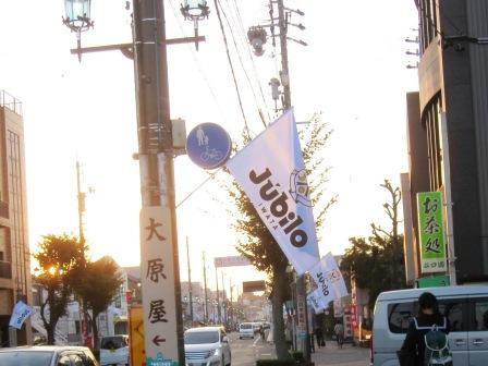 通りは「見付宿場通り」といい、駅からは遠いが、結構人通りもある。 ジュビロ磐田の旗が賑わいを添えている。 |