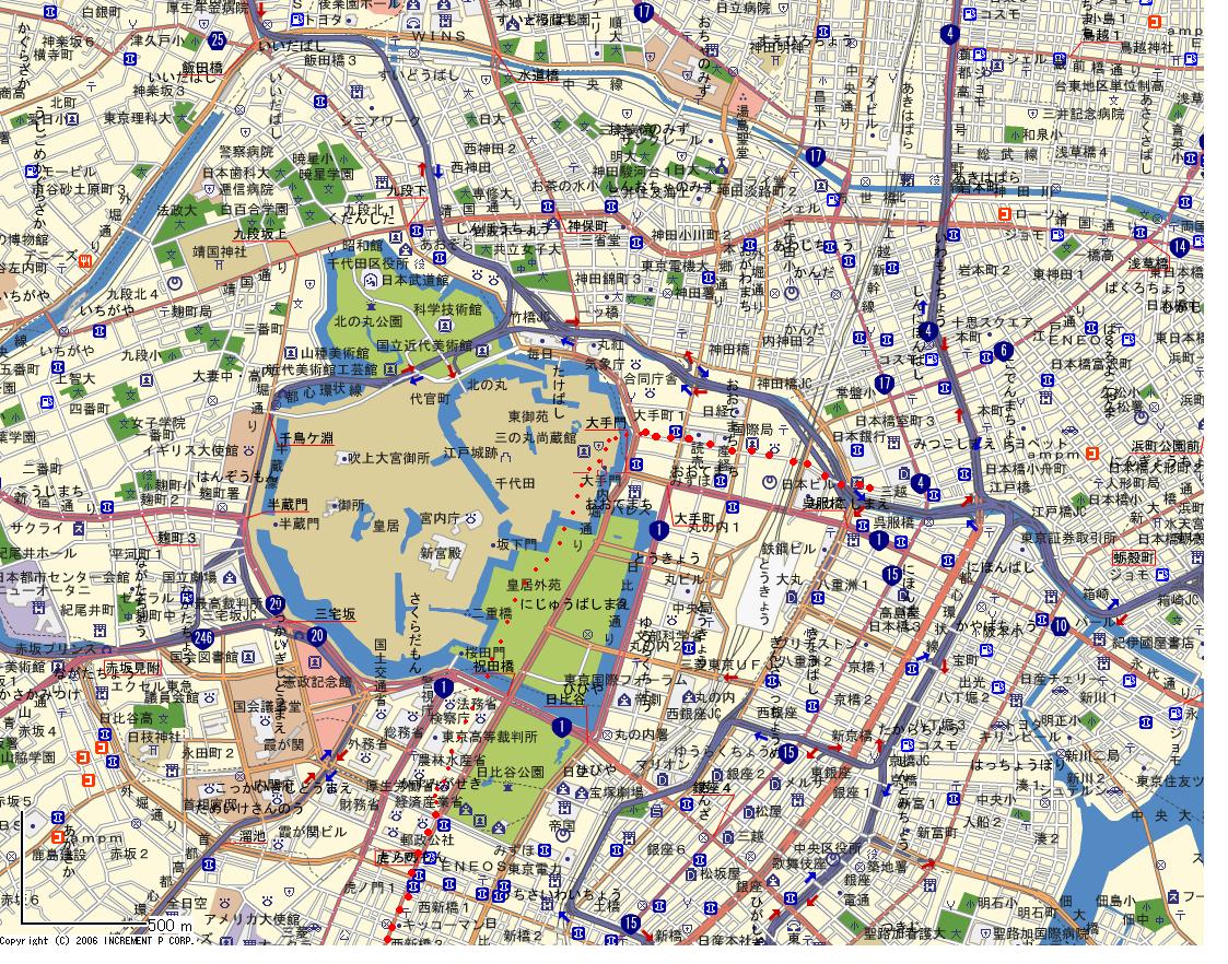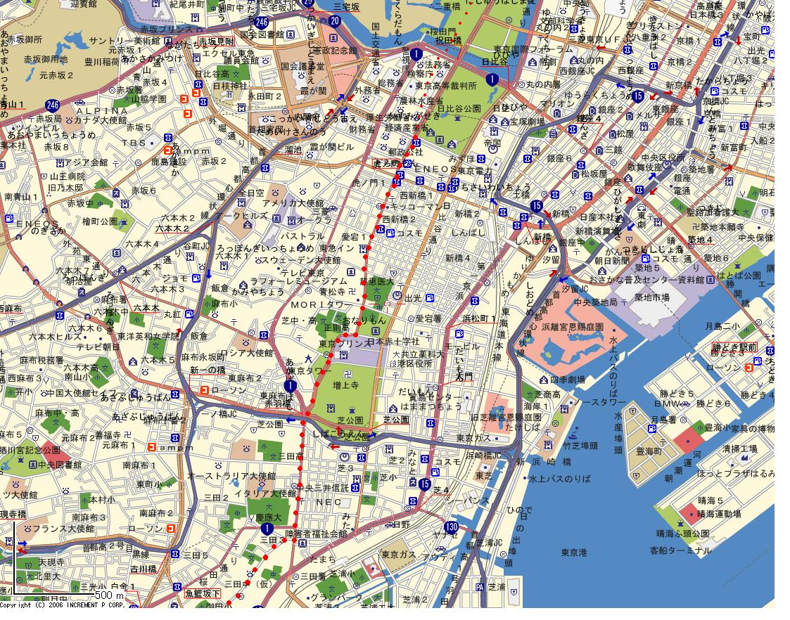 | 鎌倉下の道 J 三田-大手町 地図 → @三田-日比谷 A日比谷-大手町 |
