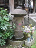 左に入る細い道の奥にある。本堂の前に円筒形の石に六地蔵を彫った石仏があった。裏に「史蹟 渡邊之綱産湯之井戸」がある。 ![]() |