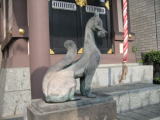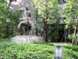 首都高速の先に東京タワーが見えてくる。 手前右側に小さな稲荷神社がある。 ブロンズ製の狐 |