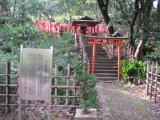 左手に鳥居と急な階段がそびえている。「出世の石段」といわれている。 四国丸亀藩の曲垣平九郎盛澄が騎馬で正面の階段=男坂86段を駆け上り、境内の梅を将軍家光に献上したことから、日本一の馬術の名人として名を馳せたという。 階段の上から見下ろしたところ |