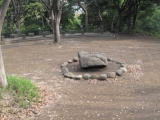 古墳の頂上部分に伊能忠敬も功績を顕彰した石碑が建っている。 石碑によれば、「延享2年(1745年)上総国に生まれ、50歳で江戸に出て天文暦數の學を究めた。測地測量は1800年から蝦夷地奥州街道の實測を始め、1818年74歳で没するまで続けられ、その偉業は引きつがれて1821年大中小の大日本沿海與地全圖が完成した。以下略」」 |
