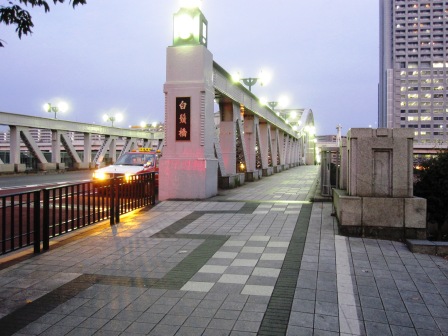 | 白髭(しらひげ)の名は、天暦5年(951)創建とされる向島の白髭神社に由来しているという。 隅田川は武蔵と下総の境界であり、 在原業平の伊勢物語にも出てくる「橋場の渡し」である。 白髭橋南側 |