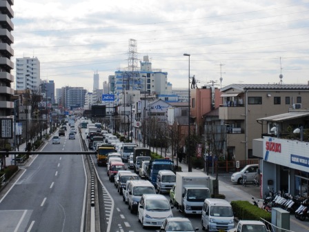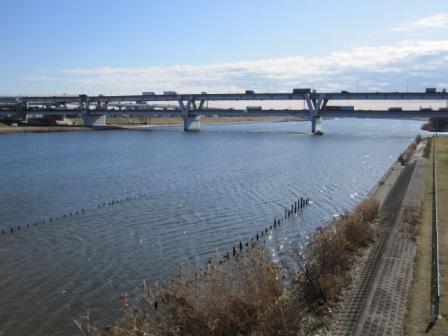 | 多門寺から北に向かうが、旧道は荒川で分断される。そこで東武伊勢崎線に沿って北上し、堀切橋をわたって対岸に行くことになる。 高い位置を走る首都高の下を抜け堀切駅手前の陸橋から土手沿いの道にでて堀切橋を渡る。 |