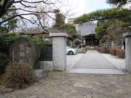 | 鐘ヶ淵駅前を真西に行って、正福寺の北にある信号のある交差点までもどり、北に向かう。 「隅田川七福神巡路」と書かれた看板が立ち、親しみのある街並みを約700m進むと、多門寺がある。 多門寺の創建は不詳であるが、天徳年間(957〜60)には現隅田川神社付近にあり、天正年間(1573〜91)に本尊を毘沙門天として多門寺に改称したといわれる。 |