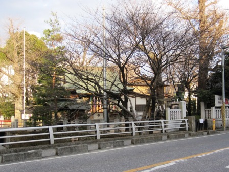 300mほど先にある春雨橋あたりまでが、明治29年(1896)の鉄道開通以前の町の中心であったという。 旧道はこのまま北に向かうが、今回は松戸までの散策の予定なので、他の史跡を訪ねる。 最初の信号を右折すると左手に松戸神社がある。 |