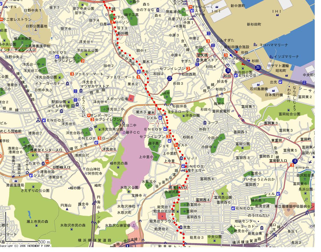 | 京急能見台駅から京急ショッピングプラザまで行き、そこから鎌倉下の道をたどる。 |