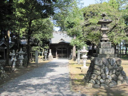 | 境内には庚申塔などが立ち、その右奥には堂が建ち、 |