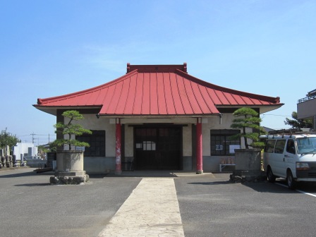| 神社の東隣が玉蓮寺で、国道側から長い参道がある。 児玉党の領主児玉六郎時国の開基で、境内は時国に館跡という。 日蓮上人が文永8年(1271)佐渡流罪の途中と、3年後に鎌倉に戻る時に、この時国の館に泊まった。弘安9年(1286)日蓮没後、館に代えて寺院にしたのが、 途中右手奥に、日蓮上人御洗足の井戸があり、、本堂裏手の墓地には、高さ2mを越す板碑が立つ。大きな梵字と嘉永2年(1304)と刻まれている。 |