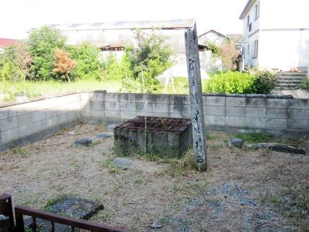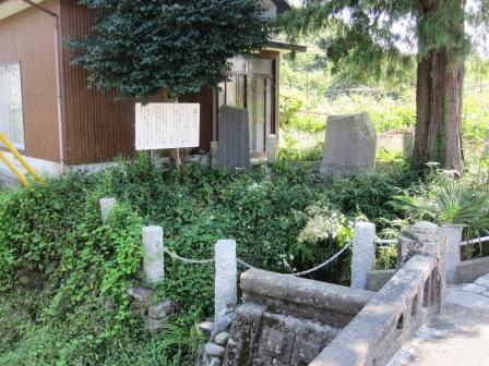 | 広木会館の広場の脇に志戸川が流れ、角に「史蹟曝井入口」の標識が立つ。約300mほど上流に行くと井戸の跡が残っている。「往古織布をさらすために使用した湧水で、ここでさらされた布は、調庸布として朝廷に献納されたという。 万葉集第九巻に、「三栗の中にめぐれる曝井の 絶えず通わんそこに妻もが」とある、と説明板にある。 旧街道に戻り、西に進む。200mほど先に大きなみか神社の石柱があり、北に参道が続いている。 |