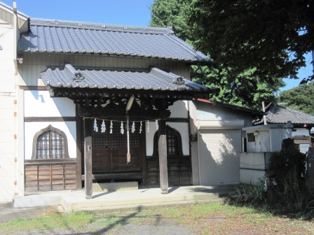 | 小前田駅の西に南北に通る上の道ー旧街道ーに行くために、駅前の道を西に進む。 小前田神社の脇を過ぎて西に向かう。 諏訪神社に3台の屋台が保存されているという。「小前田の祭り」に、屋台ばやしと共に小前田宿内を引きまわしがされたという。 |