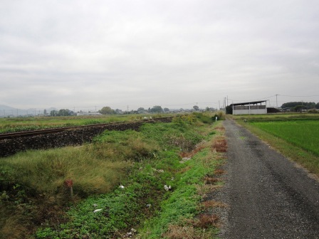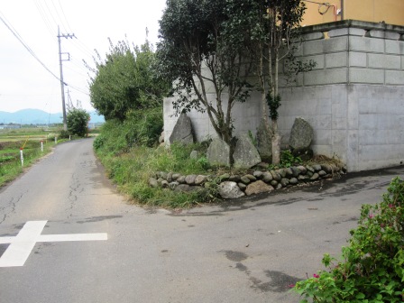 | ここから北に向かう旧街道は、耕地整理のため消えている。 陣屋跡の前の道を北に向かい、鏑川の低地へ下る坂の手前を右折すると、雑木林の先に切り通しの旧街道があるという。 その先三つ木集落に出て鏑川に下る道があり、渡し場があったという。 今回の本来の予定は、鏑川まで行き迂回したのち対岸にでて、上信電鉄の西山名駅までの工程であったが、途中で時間が掛かり、暗くなったため、これ以上は断念した。 |