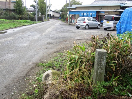 神社から500m南のいくと、十字路とぶつかり、ここに東(神流川方面)からきているのが旧街道である。 |