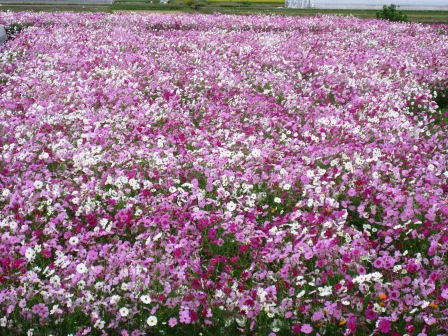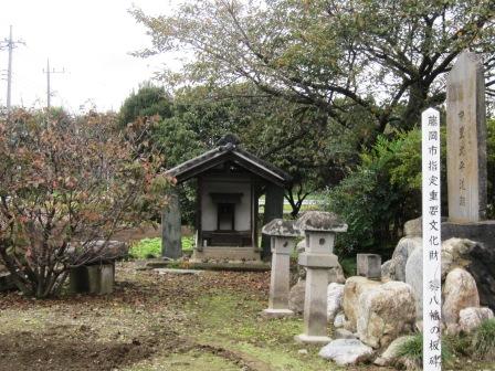 | 直ぐ南に神社がある。この辺りには埴輪製作の「土師部」の人々が住み、「野見宿禰(のみのすくね)」を祭神とする土師神社を祀ったという。 日本書紀によると、垂仁天皇の時に野見宿禰(のみのすくね)が出雲から土師部を呼び、土で人馬や器具を造り殉死を防いだことが記されている。…埴輪の起源 「日本三辻」の一つと称され、明治以前は出世力士の披露相撲が奉納され、勧進相撲も行われたという。 「日本三辻」・・・摂津国;住吉神社、 能登国;羽咋(はくい)神社 南側の畑には庚申供養塔などがたち、脇の畑にはコスモスがきれいに咲いている。 |