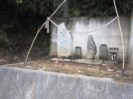 県道を越えて途中まで旧街道は残っているが、その先で消えている。民家の脇を通り、山を上る小路を途中まで行ったが、灌木と藪が覆っていて、結局あきらめて戻り、北側の広い車道にでて迂回することになった。 |