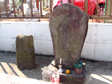 奥まった所の左側に、2基の五輪塔が立つ。 また、墓地の隅には板碑もたつ。 芳賀氏によれば、境川流域に、五輪塔や板碑があるのは珍しい。近くに妙光寺があることからで、また鎌倉街道があったことの証明である。という |