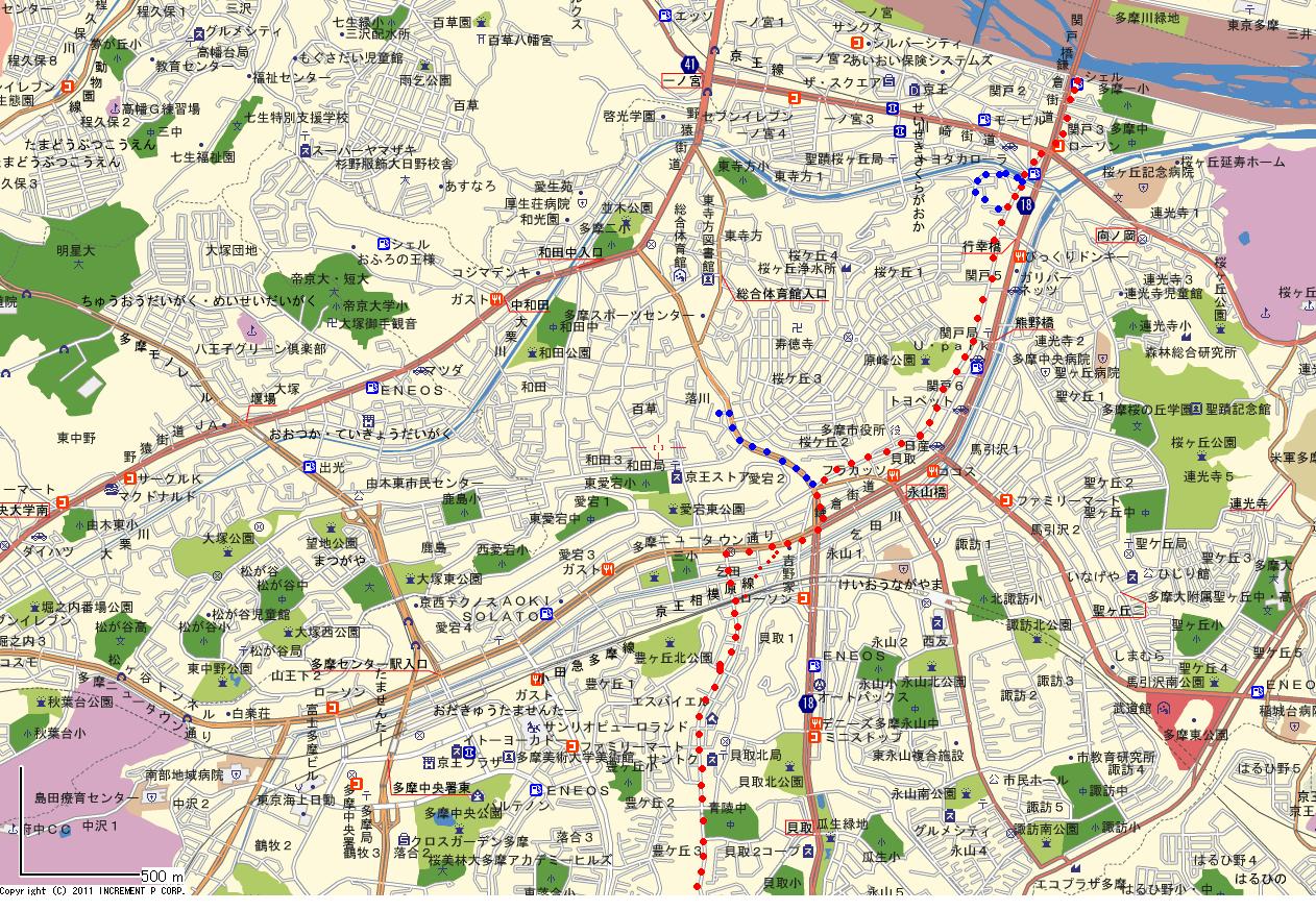 | 町田市の野津田から 永山、関戸を経由して多摩川を越える。 前回訪れた野津田から小野路までのもうひとつのルートを訪れることにする。 |