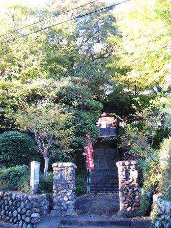 | 左側に学校が見える手前で、右側からの階段がある。旧街道の登りのようだ。 その先に神学校の入り口があり、左折して、野津田高校の端をすすむと、陸上競技場がみえる。 神学校入口 |