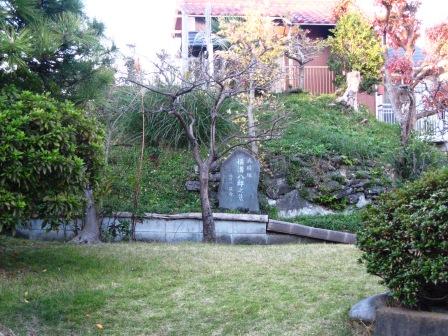 | 地蔵堂の脇を丘陵に向かって登ると、右手に民家の庭があり、横溝八郎之墓 延命寺という石碑がみえる。 先ほど通過した観音寺の手前、左手には、小山家があり、その庭には安保(あぼ)入道道忍の墓があるという。 両名とも北条方の武将で、関戸の戦いでここに踏みとどまって北条泰家を守り、戦死した。 |