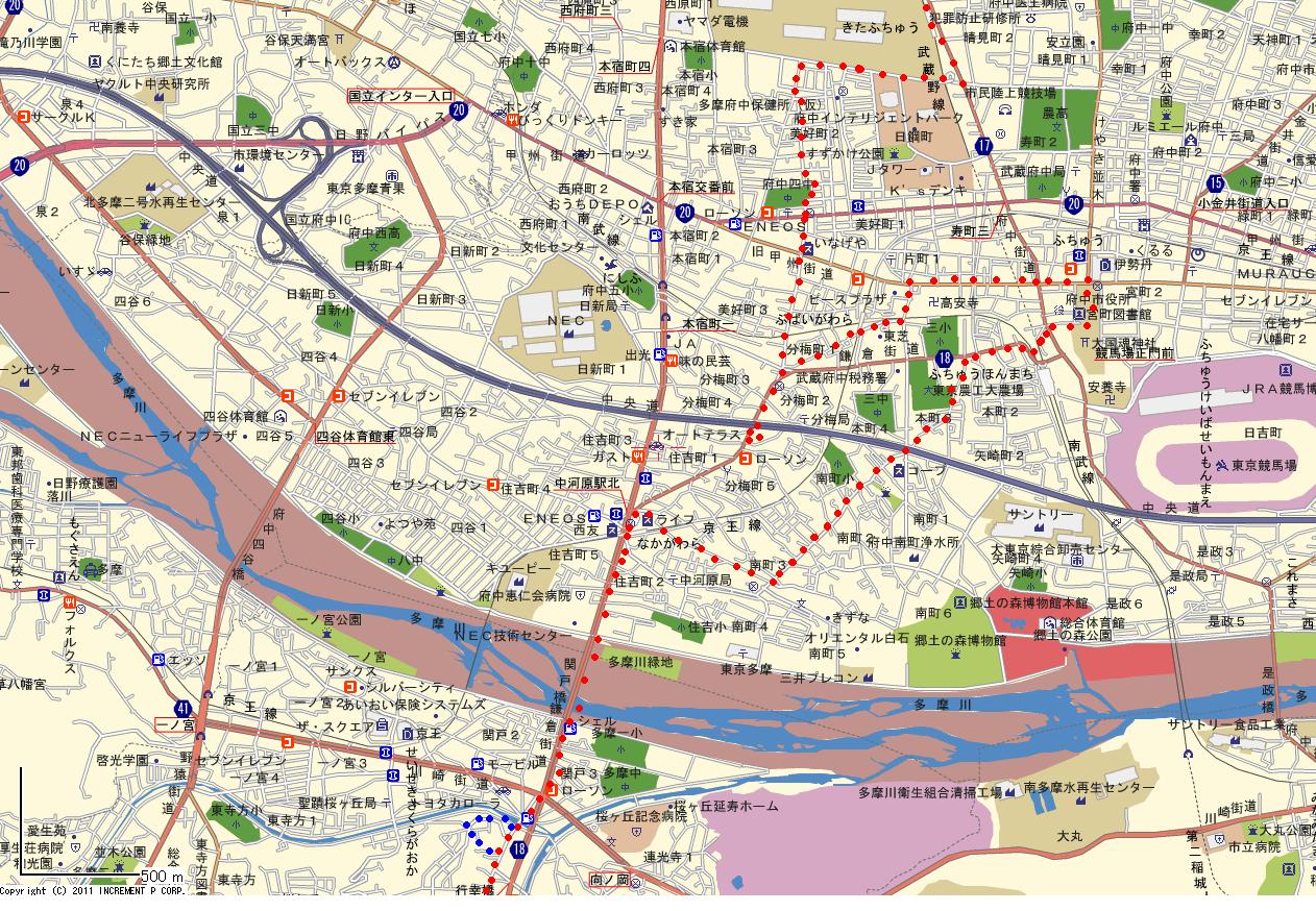 鎌倉 上の道 6.中河原-西国分寺 地図: @中河原−北府中 A北府中−西国分寺