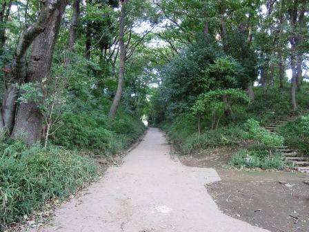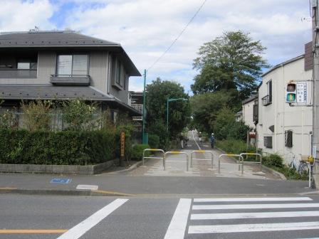 | 旧甲州街道を西に向かうと、下河原緑道がある。この左の坂は、鹿島坂といい、説明板によると、「大国魂神社の5月の例大祭の『国造代奉幣式』の行事で、使いが神馬に乗って坪宮神社に行った後、この坂を上り神社へ奉幣したというもので、その役を担っていた鹿島田家のちなんでつけられた」という。 | |||