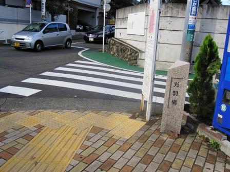 | このあたりから、北に向かうのが旧街道のもう一つのルートである。 光明橋の石柱→ |