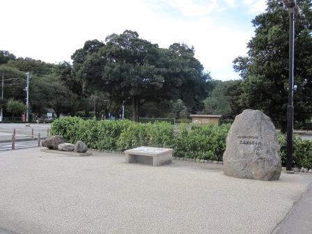 | 一旦、旧街道の光明橋(分梅駐在所信号)まで行き、そこを左折=東に向かい、京王線のガードまで、以前の石碑が建っていた場所を探しにいった。芳賀氏の地図には、現在地に移る前の場所がマークされていたので、まだ何か痕跡があることを期待したのであるが、何も見つからなかった。 分梅駐在所信号まで戻り、南に進み、中央道を過ぎた左側に新田川緑道への入り口がある。そこに分倍河原古戦場の石碑が建つ。(記念碑は新田氏の子孫で元男爵新田義美の筆によるという。昭和10年に建てられ、昭和63年にこの地に移転したという。) |