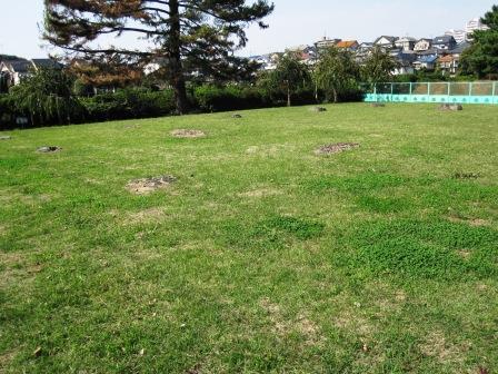 | 広い自動車道を信号のある場所でわたり、さらに北に進む。 黒鐘公園があり、手前に国分尼寺跡がある。 国府(今の府中市)から真北に延びる東山道武蔵道を挟んで東に国分寺、西に国分尼寺が造られた。 中門跡、金堂跡、尼坊跡などが発掘されているが、全体の配置ははっきりしていない 金堂跡→ |