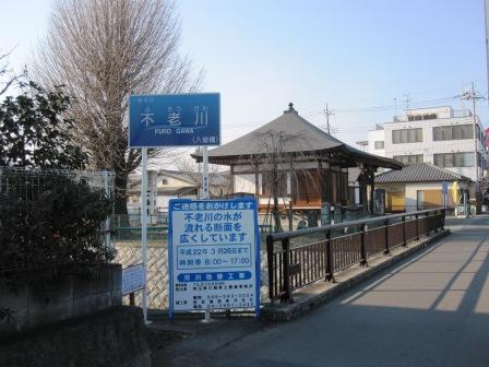 観音堂の創立は建仁2年(1202)という。 不老川は、昔は毎年冬季になると必ず水が涸れてしまい、年をとらないという縁起を担いで名付けられたという。 |