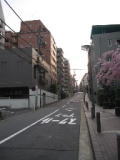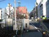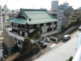 いまの首都高速の高架の下をくぐると、右手に勧行寺がみえる |